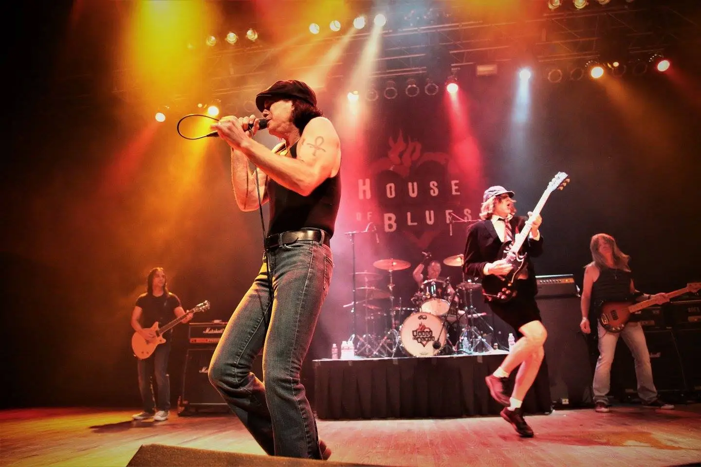 They are one of the first tribute bands chosen by Live Nation/CBS Radio to tour the House of Blues! They toured major arenas and theaters as part of the Classic Rock Experience in 2008/2009. They Headlined concerts at the Calgary Saddledome and Edmonton Arena. For the third year in a row they will headline the worlds largest Tribute Festival, Jacks Throwback in Dallas. They also performed to over 36,000 people at the Bone Bash in Ft Worth, and have been recruited by Sony Music, AC/DC’s new record label, to promote catalog sales. 20th Century Fox have chosen Back in Black over all other tribute bands to record AC/DC’s classics “TNT” and “A Long Way to the Top” for two of their movies, Napoleon Dynamite and Garage Days