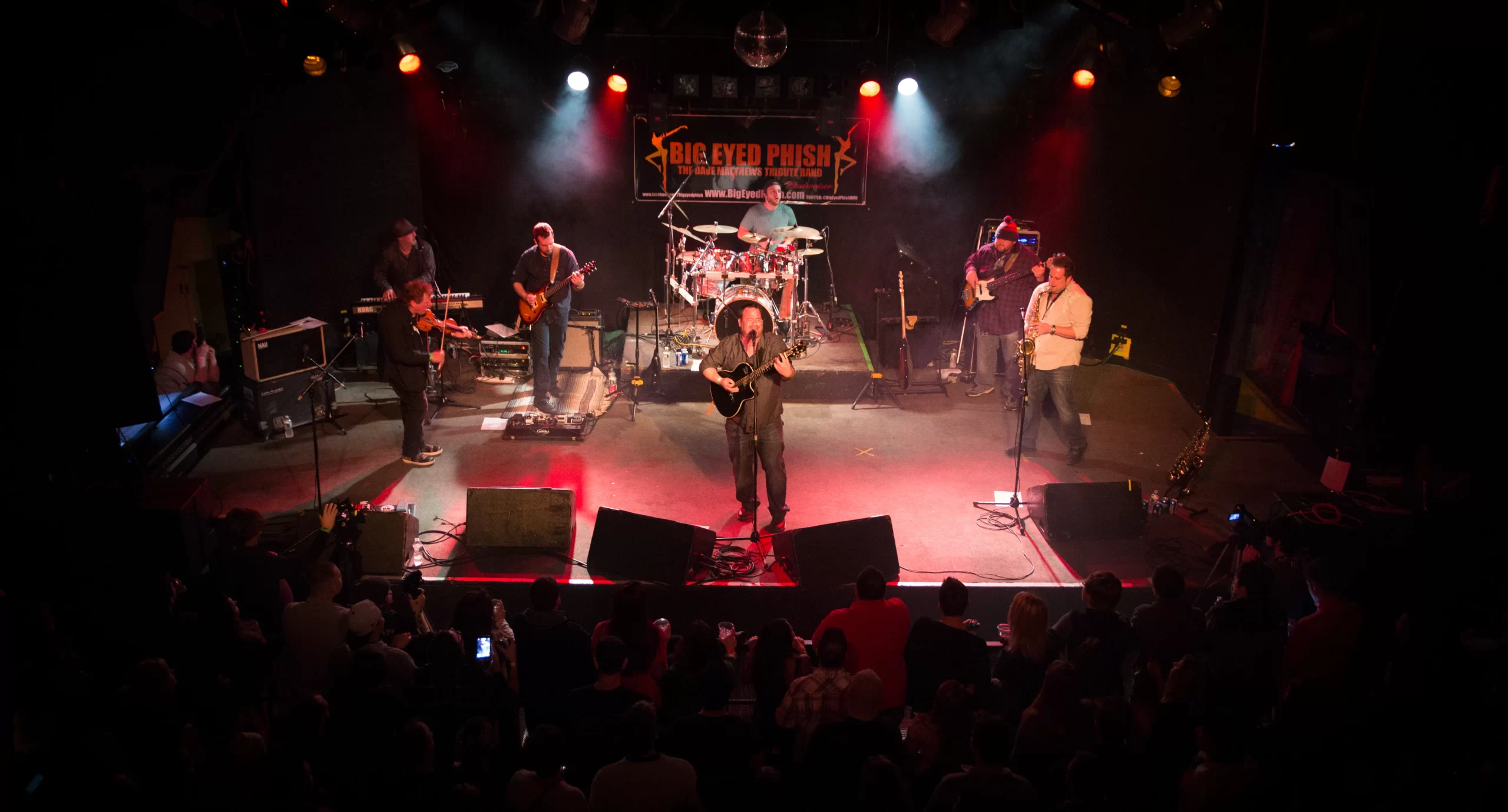 Big Eyed Phish is the only regionally touring full 7-piece Dave Matthews Tribute in the country and are based out of Rochester, NY. In the 8 years they have been performing together, they have grown to become a highly sought-after headlining act for festivals, resorts, casinos, and live music venues. The band is lead by frontman Brandon Depaul, the founder of the former DMB Tribute: Tripping Billies. He is backed up by a great band of truly professional musicians and is the only DMB Tribute that can claim to have a full time lead guitar and keyboard player. This allows them to be the only accurate DMB Tribute in the country able to cover the full spectrum of the DMB catalog throughout the lineup changes seen in the Dave Matthews Band.